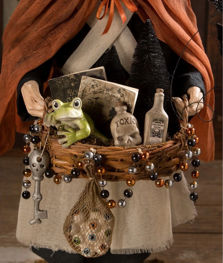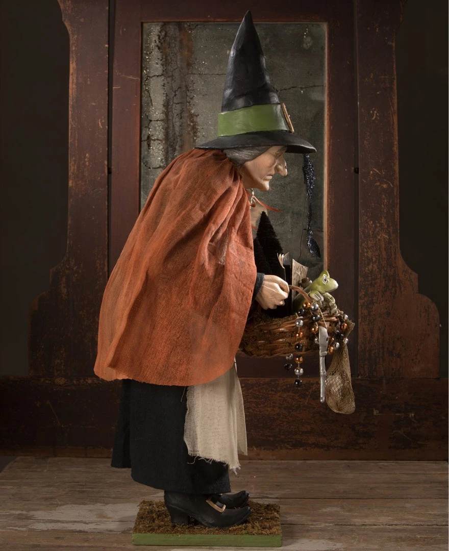 Instantly create a thrilling Halloween scene with this large and impressively detailed Brewhilda Peddler Witch designed by artist Bethany Lowe.
