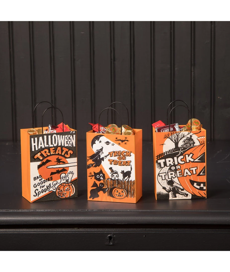 - Set of 3 – assorted Retro Halloween Tin Treat Bags
