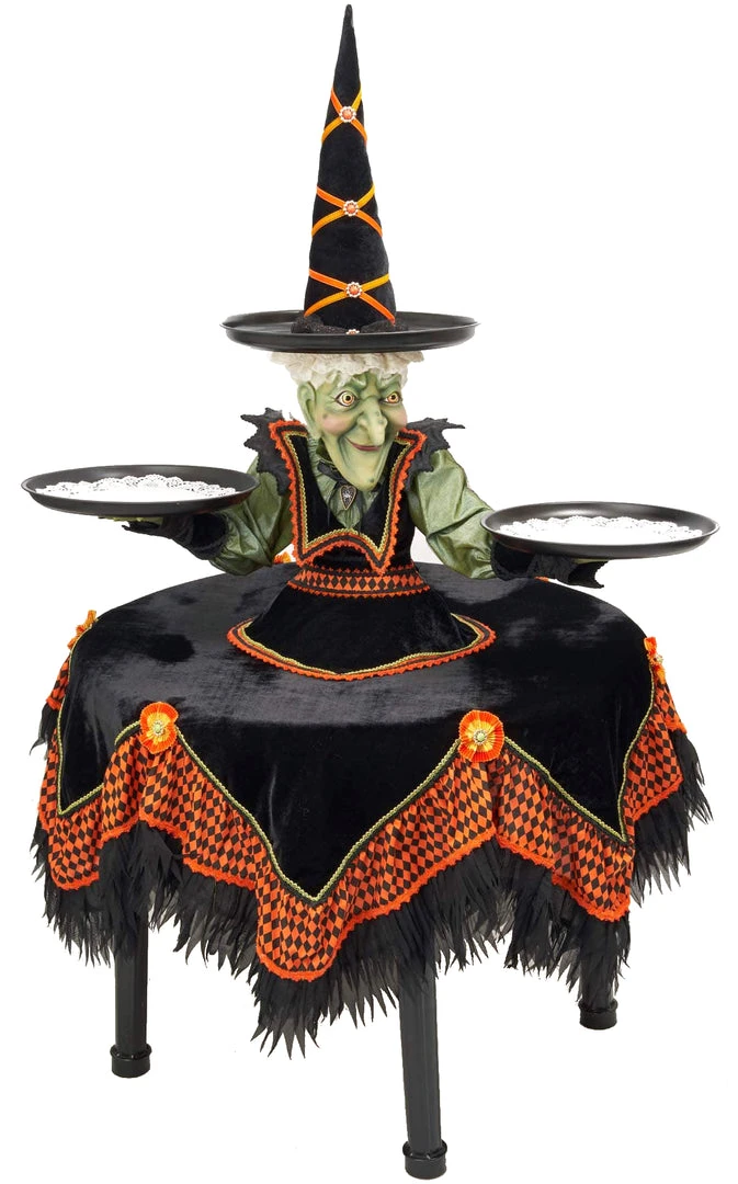 This Bewitching Witch Cupcake Holder will be the center of attention at your Halloween party. She’s a one-and-done Halloween Witch cupcake Server complete with a designer table cloth attached; say yes to the dress!