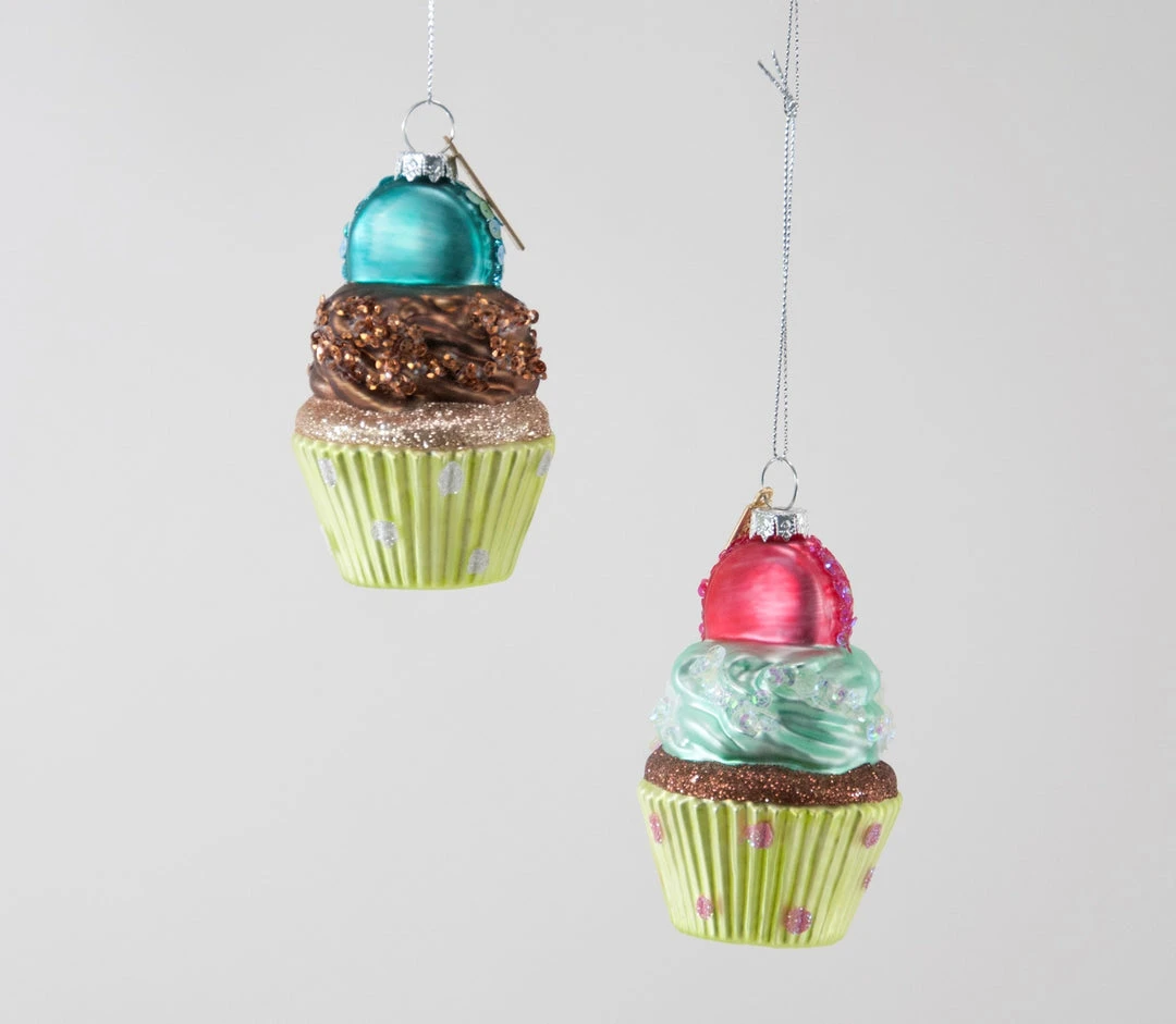 - Set of 2 – assorted cupcake ornaments