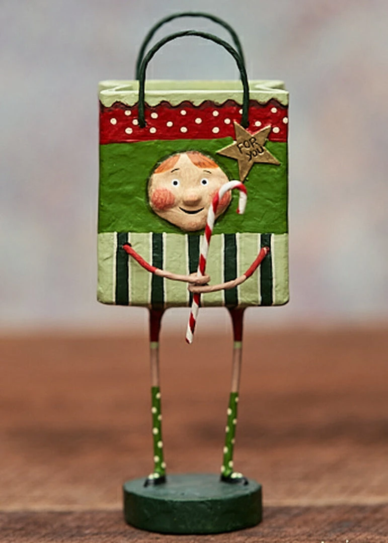 Bring home laughs this holiday season with Davey’s Gift Bag Figurine designed by artist Lori Mitchell.
