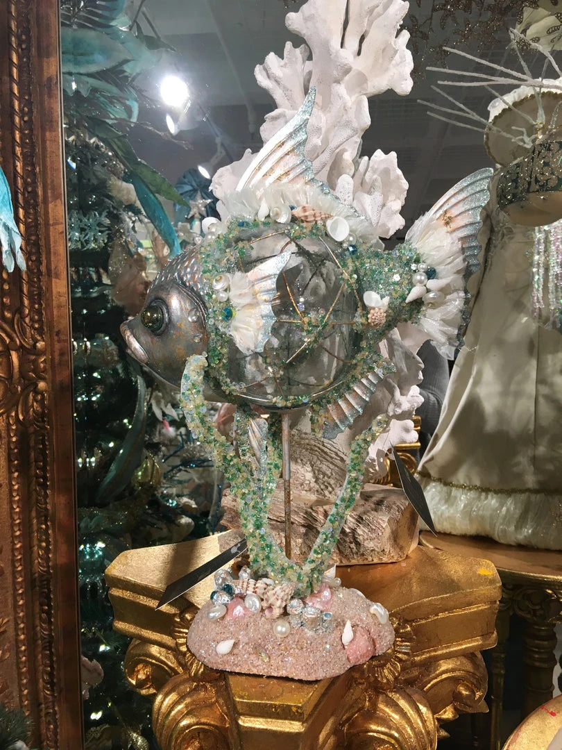 Under the sea, treasures to be found. This beautifully detailed Glass Ball Fish by Katherine’s Collection will have you dreaming about the beach and the summer breeze.