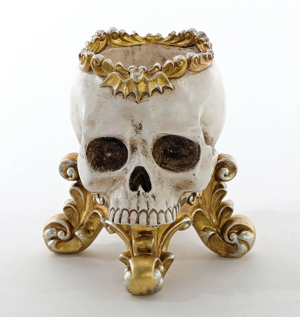 Create an eerie scene with this spooky Skull Footed Bowl by Katherine’s Collection.