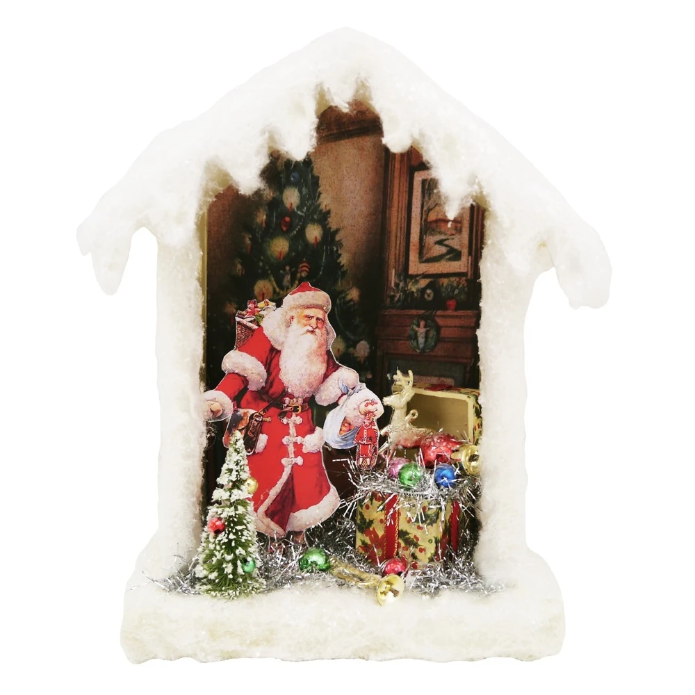 Quickly decorate a table of shelf with this lovely light up vintage Santa Christmas scene.