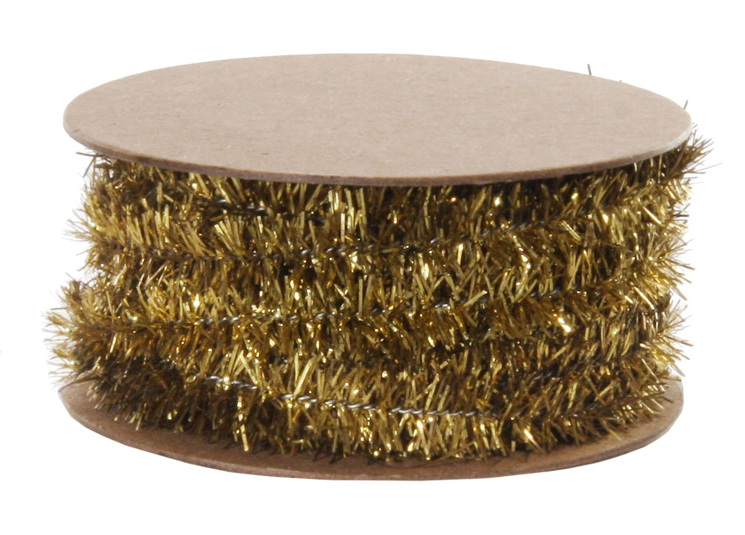 Bring a touch of gold sparkle to your project and holiday decor with this Wired Gold Tinsel.
